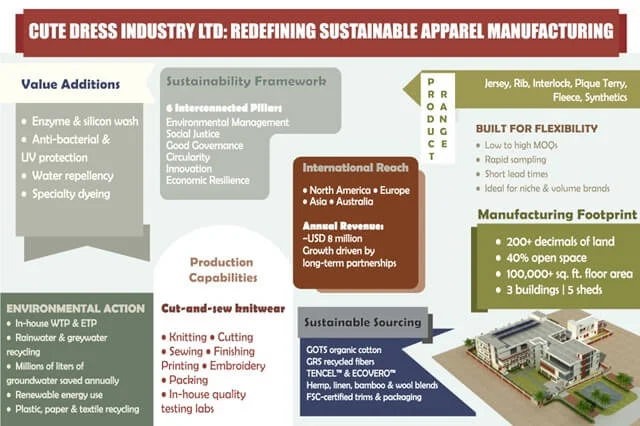 Within this evolving landscape, Bangladesh-based Cute Dress Industry Ltd. has emerged as a distinctive example of how a mid-sized apparel manufacturer can align commercial success with ethical responsibility, environmental stewardship, and long-term resilience.