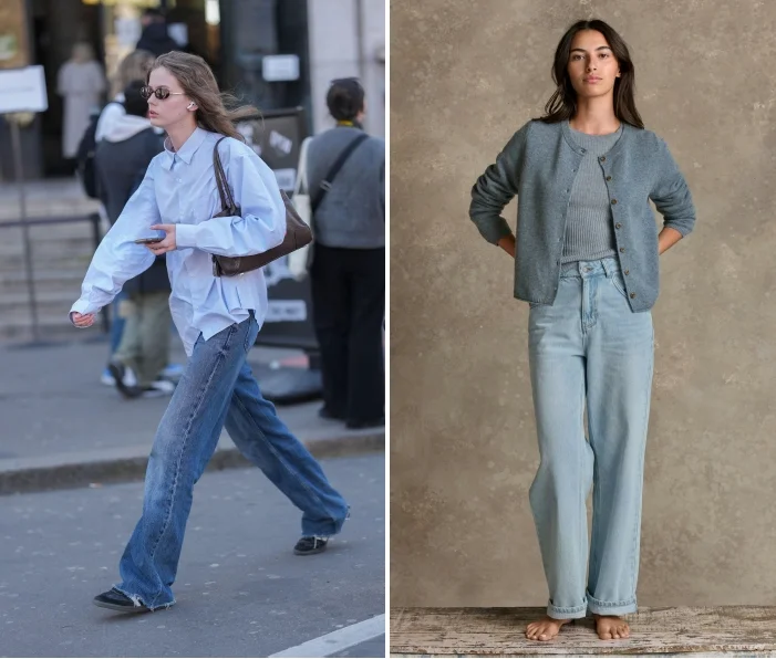 Long, loose lengths that gather slightly at the hem — often referred to as “puddle” jeans — are appearing in street-style circles for a relaxed, fashion-forward effect.