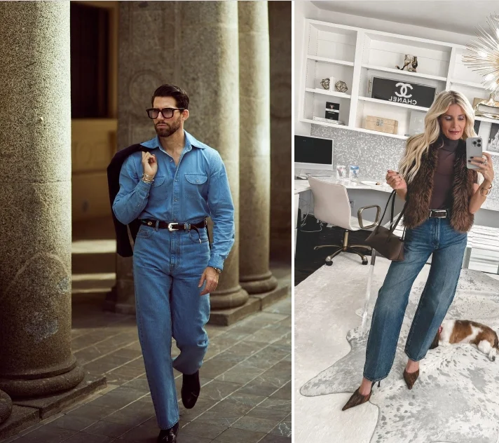 While silhouettes evolve, the finish of denim is undergoing its own refinement. Heavy distressing and aggressive rips — once emblematic of casual cool — are fading in favor of cleaner, more elevated washes and finishes. Rich indigo tones and deep blue denim lend a more polished, trouser-like energy to jeans, making them suitable even for semi-formal settings.