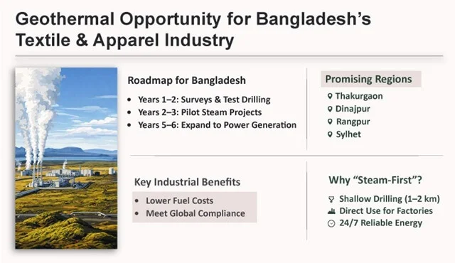 For the textile and apparel industry, this is not only about sustainability—it is about resilience. Steam-first geothermal can protect cost structures, ensure production continuity, and strengthen Bangladesh’s competitiveness in global sourcing.