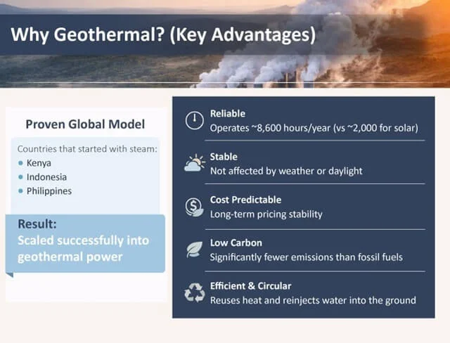 Countries like Kenya, Indonesia, and the Philippines began with direct geothermal applications before scaling into electricity generation. Their experience shows that steam-first is not only feasible but strategically sound. It builds confidence, generates early benefits, and lays the groundwork for larger power projects later.